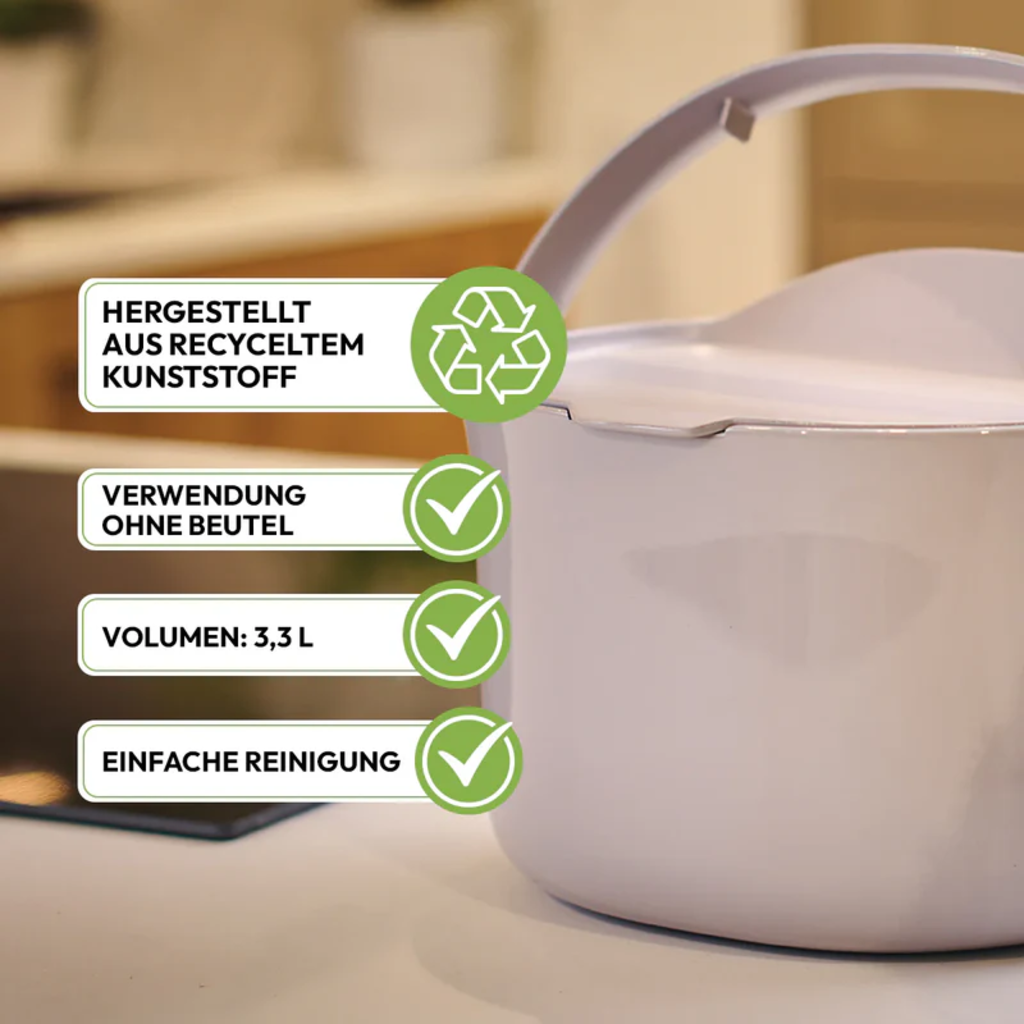 ORGANKO Daily Soptunna för organiskt avfall från Skaza kombinerar hållbarhet med praktisk hantering. Med en kapacitet på 3,3 liter är den perfekt för daglig användning i köket. Det tätslutande locket håller lukter borta och den enkla rengöringen säkerställer maximal hygien.