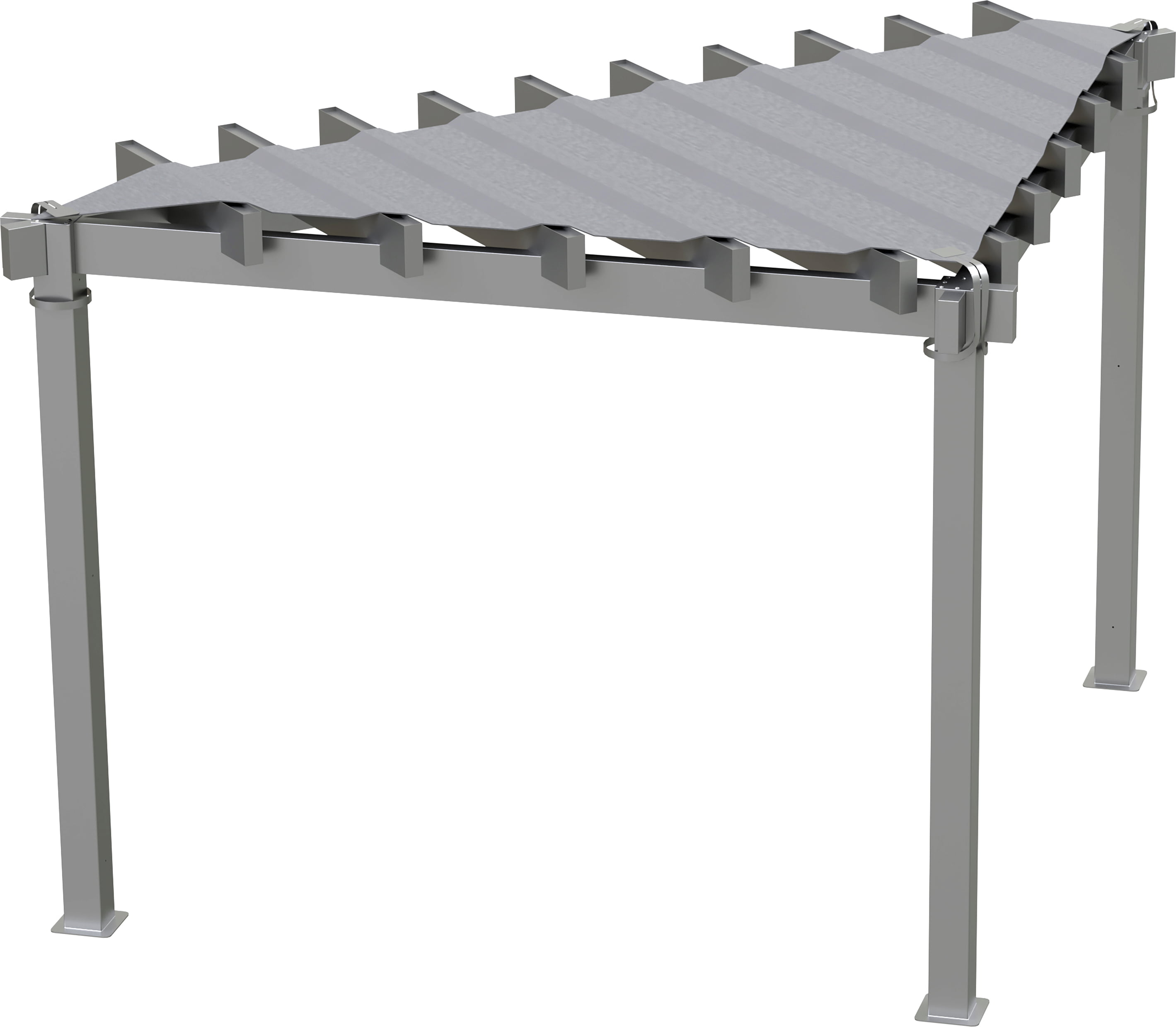 Triangulär pergola med flexibelt solsegel