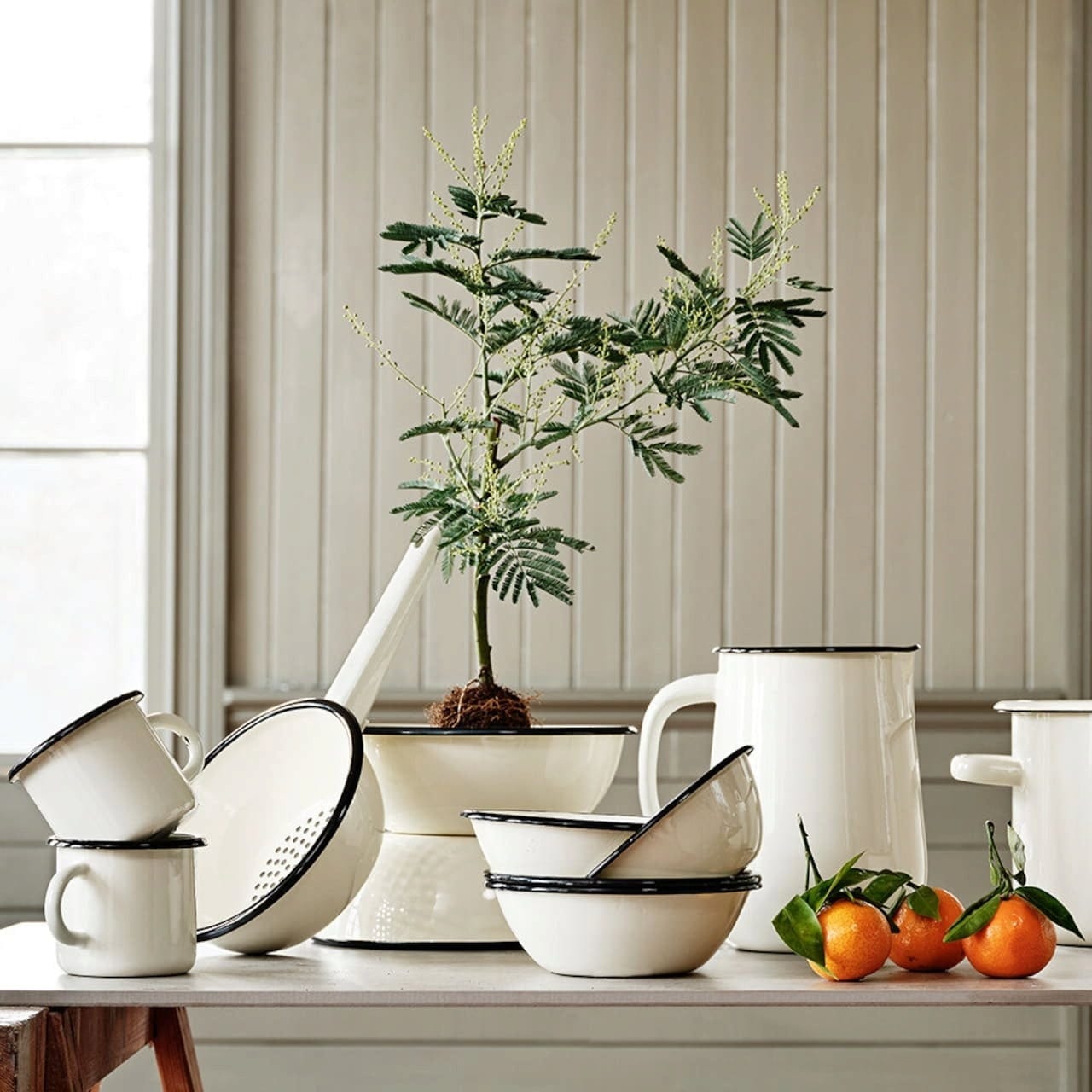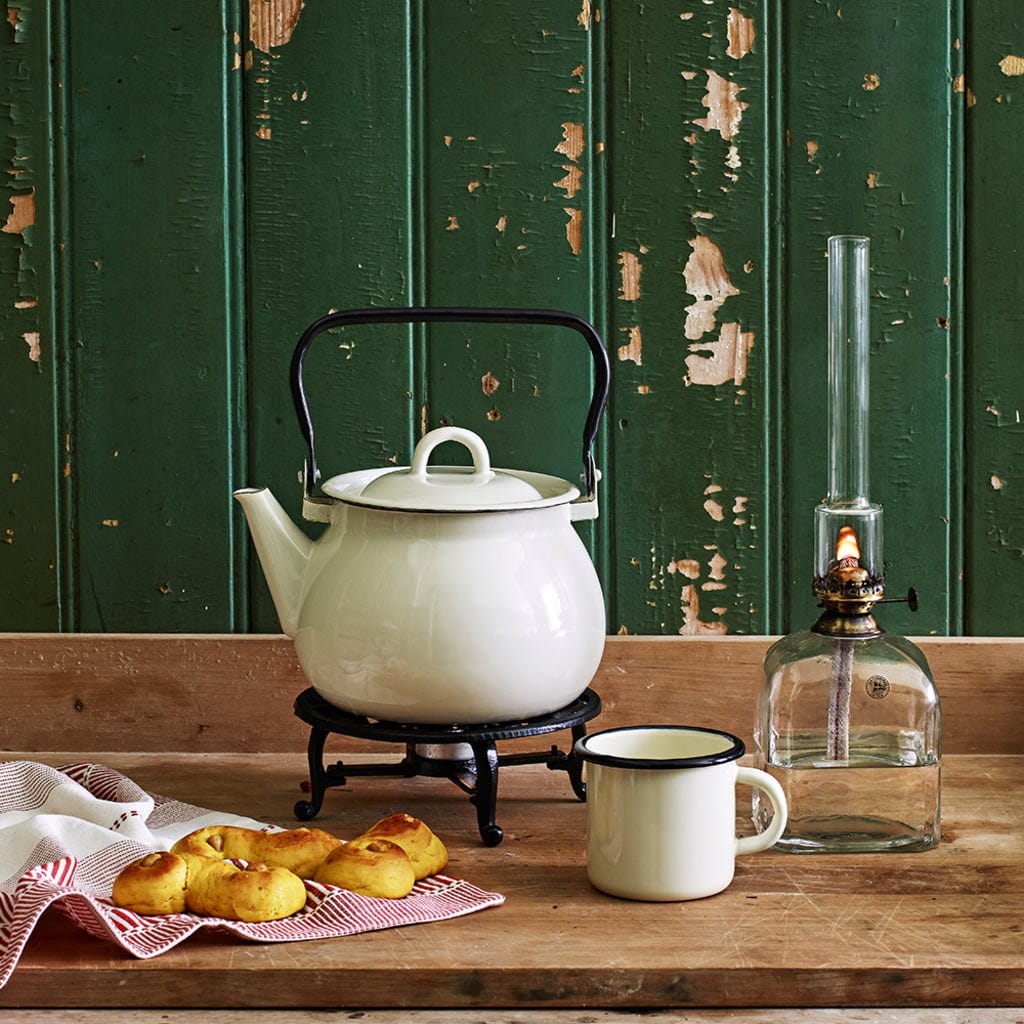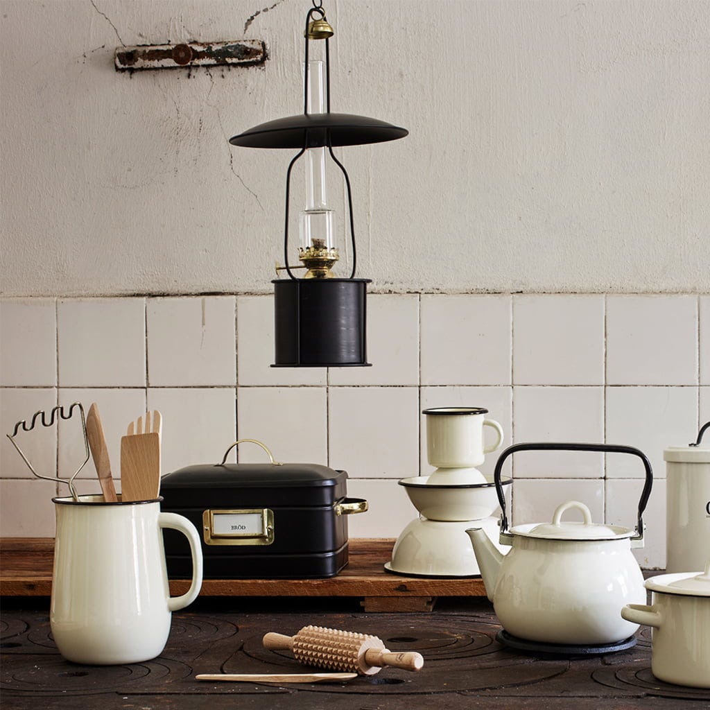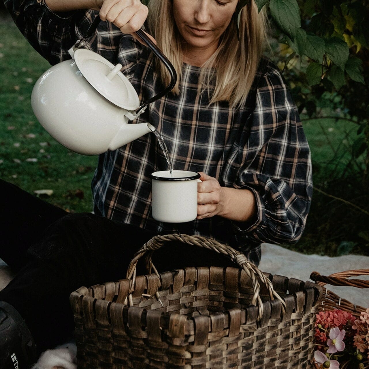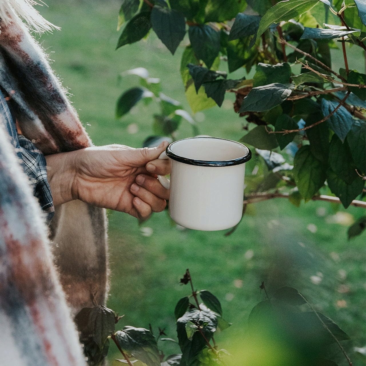 Denna emaljmugg är perfekt att ta med på resan. Det slitstarka materialet gör att den tål att packas ner i ryggsäcken eller picknickkorgen utan att gå sönder. Men även hemma är den ett riktigt blickfång - till morgonkaffet eller teet.