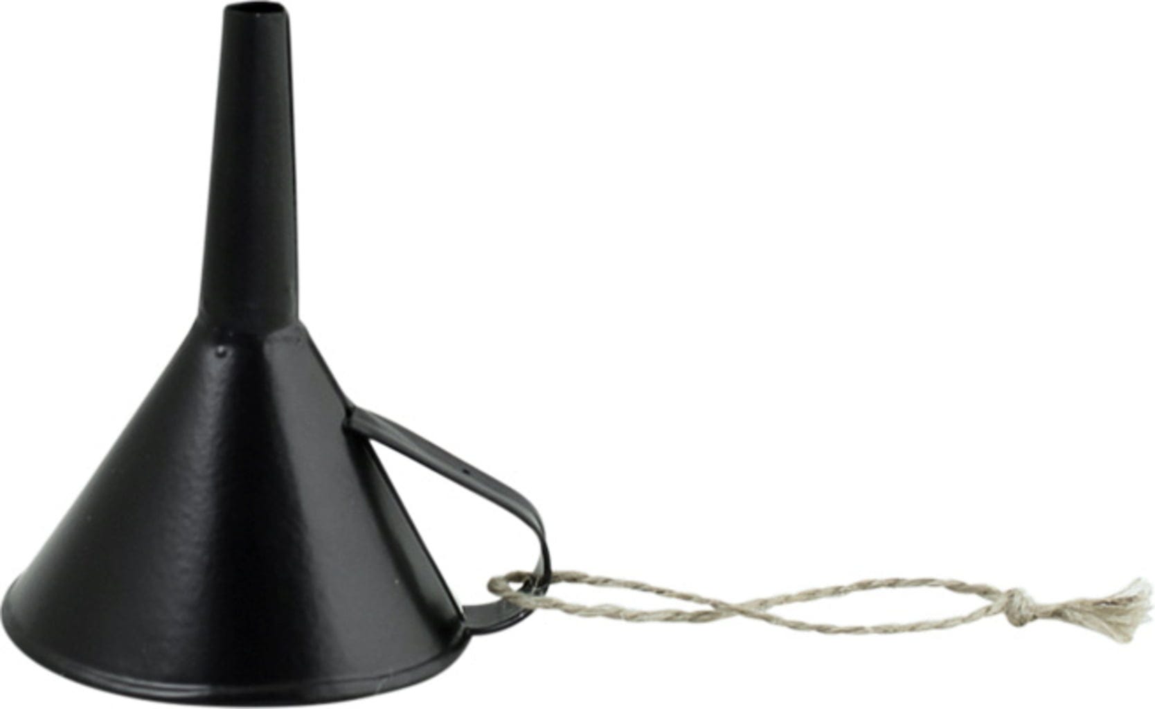 När man ska hälla vätska i kärl med smal öppning är en tratt helt oumbärlig. Med den här handgjorda modellen i matt svart finish blir arbetet både enklare och snyggare. Det praktiska handtaget ger ett stabilt grepp vid användning.
