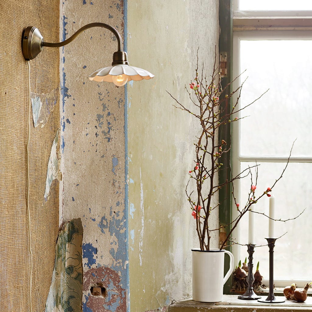 Strömshaga Vägglampa "Gustav", vit/antik mässing