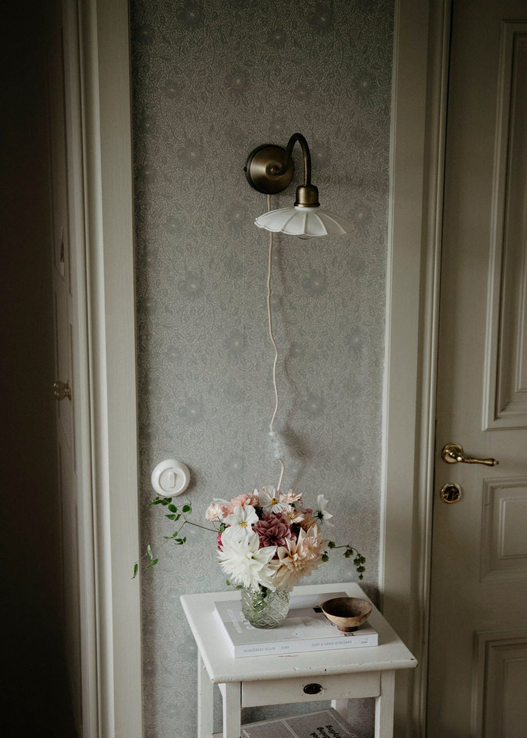 Oavsett om du vill lysa upp nattduksbordet eller en sidoyta i vardagsrummet - den här stilrena vägglampan skapar en varm och hemtrevlig känsla. Tillverkad i borstat mässing och kompletterad med en lackerad metallskärm. Den beige textilklädda sladden är 150 cm lång - precis lagom för flexibel placering.