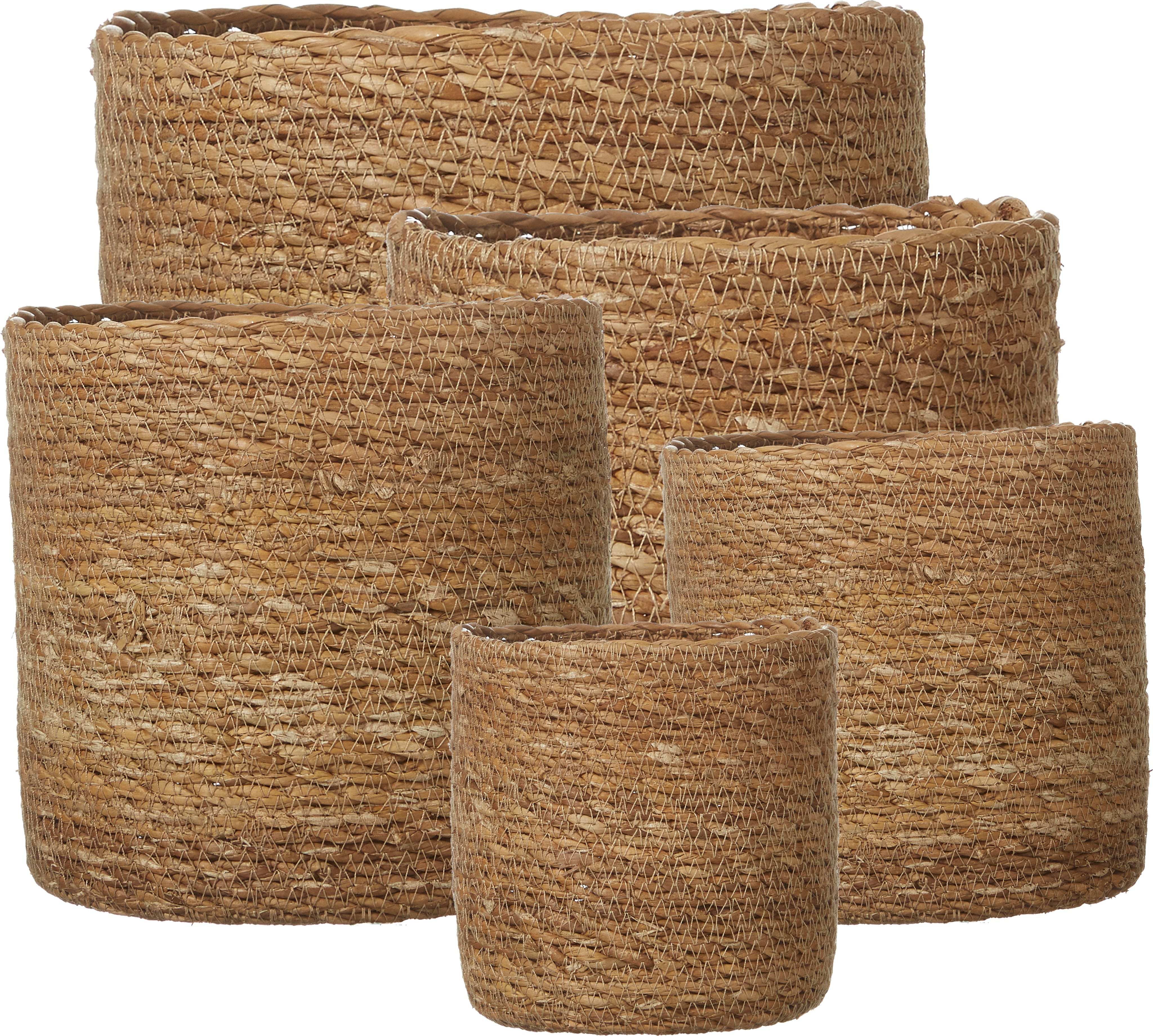 Oavsett om de används som blomkrukor eller förvaringskorgar, bjuder dessa fem krukor i naturligt sjögräs på en härlig, naturlig känsla - perfekt för att ge stilfulla rum en mjuk och bohemisk touch.