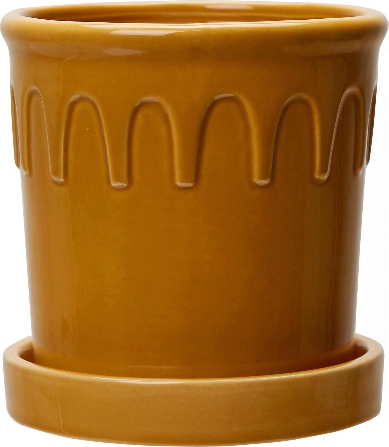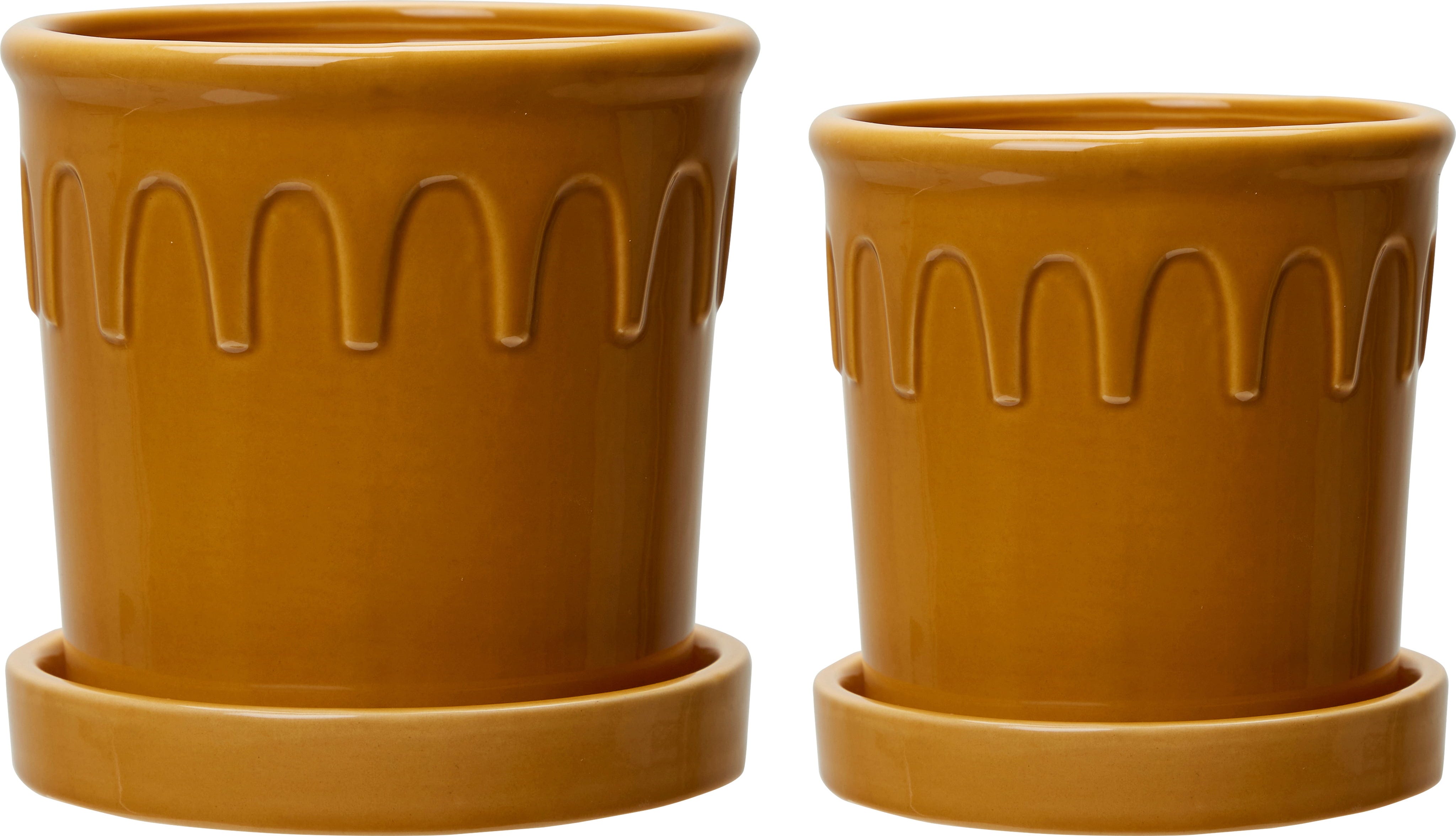 Med sin vackra gula nyans lyfter dessa ytterkrukor fram det gröna i dina favoritväxter på bästa sätt. Designen kombinerar moderna former med subtila vintage-drag, vilket gör dem till stilfulla blickfång.