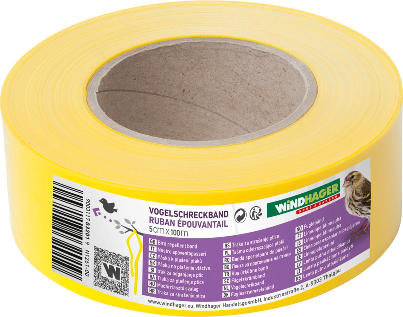Klipp av 50 cm långa remsor och fäst dem i träd och buskar, så skyddar du effektivt dina frukter och bär mot fåglar. Den gula signalfärgen och bandets rörelser i vinden håller fåglarna borta från trädgården på ett naturligt sätt.