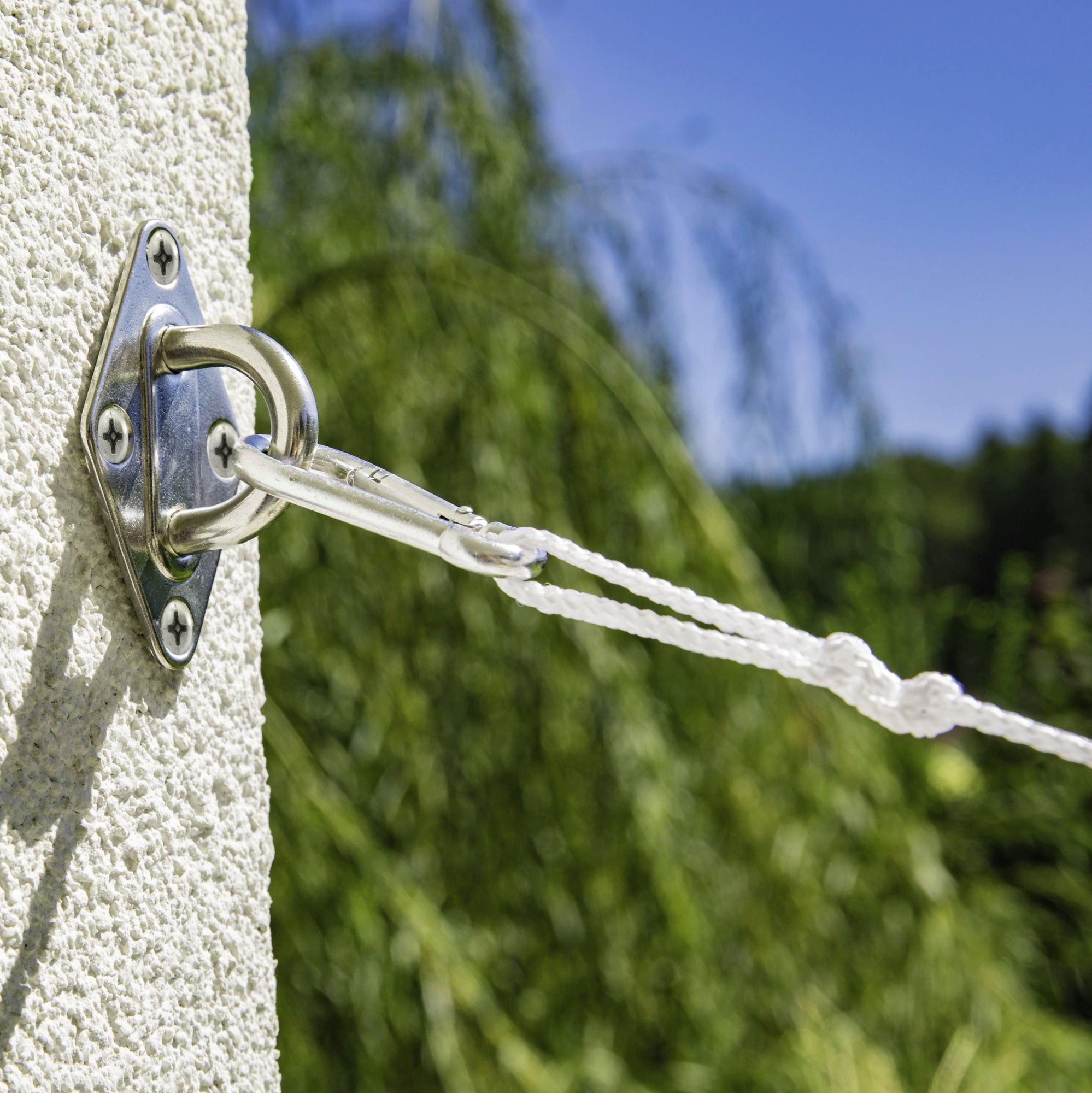 Denna praktiska lina för upphängning av solsegel är väderbeständig, mycket hållbar och finns i två längder med olika tjocklek.