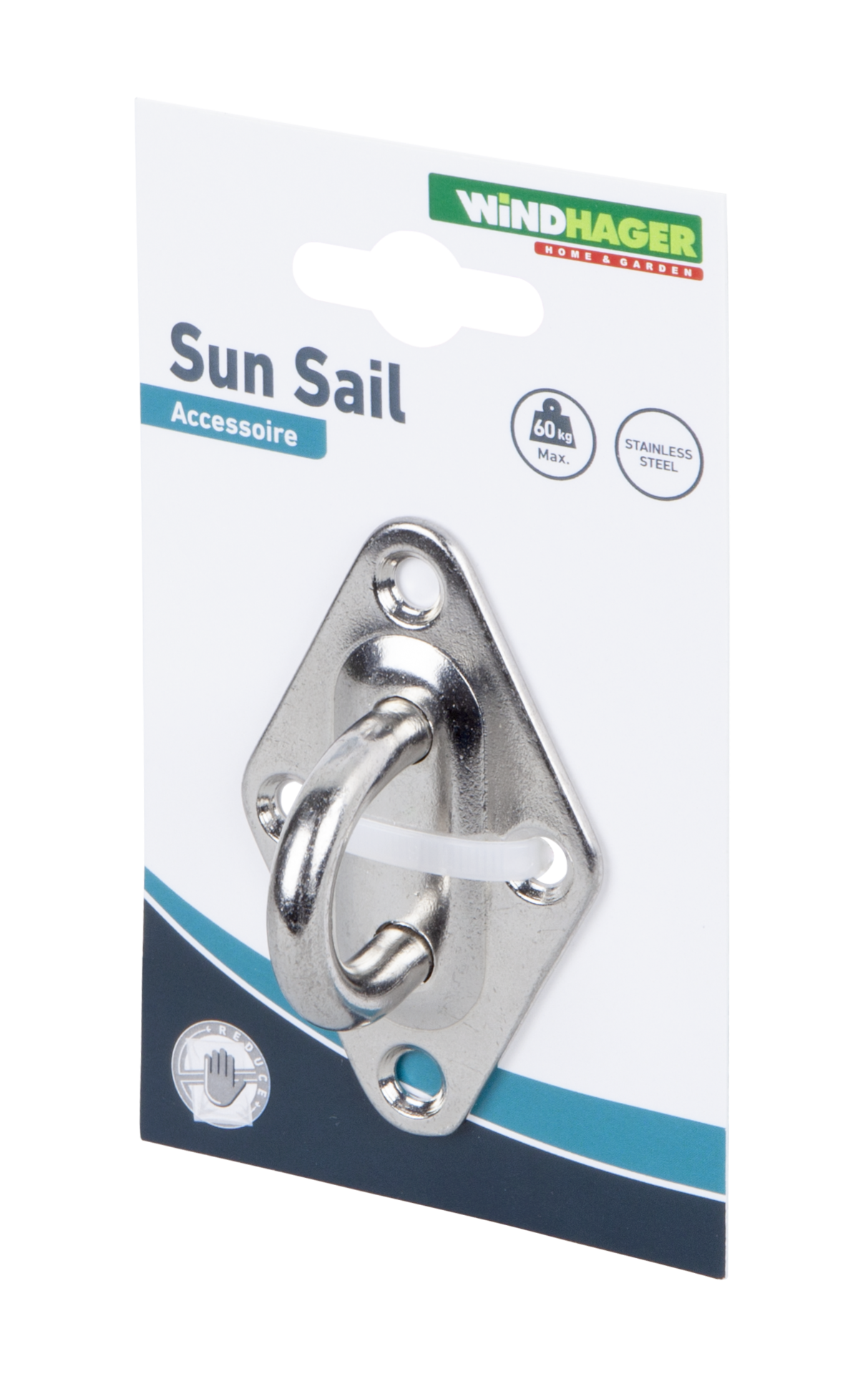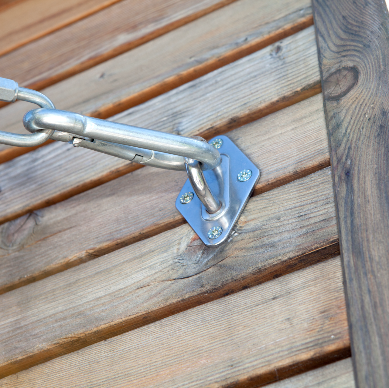 Det perfekta tillbehöret för att fästa solseglet. Passar både trästolpar och murverk. På så sätt kan seglet spännas ordentligt med rep eller förankringssystem. Alternativt kan karbinhake eller D-schackel användas.