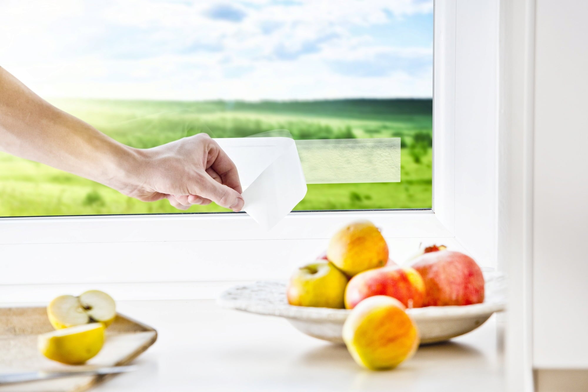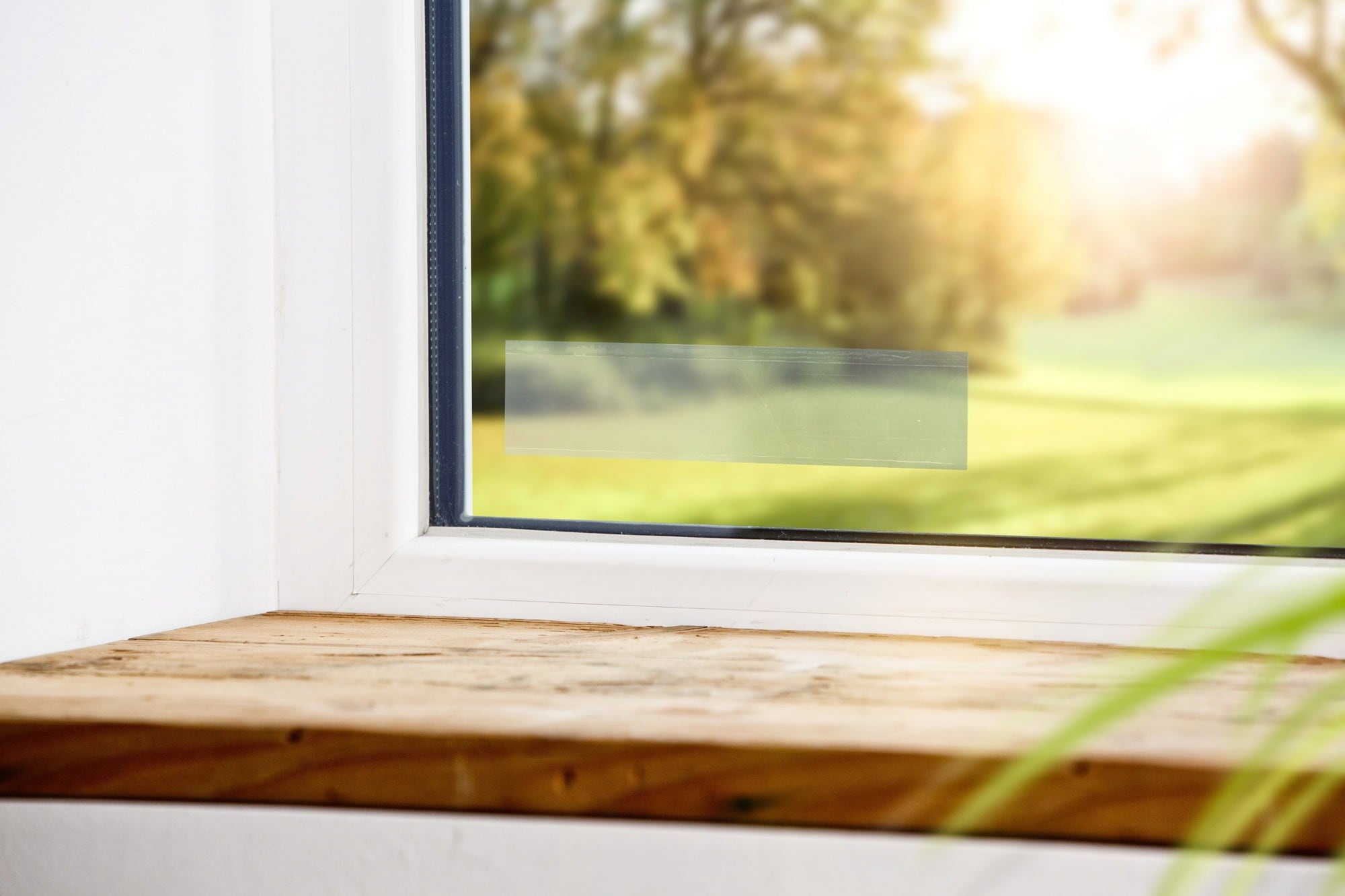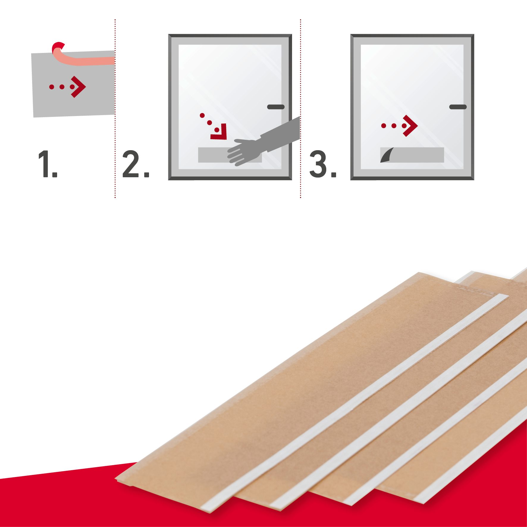 Ta bort det röda skyddsbandet på baksidan, placera fällan nedtill på fönsterrutan och tryck fast den ordentligt.
