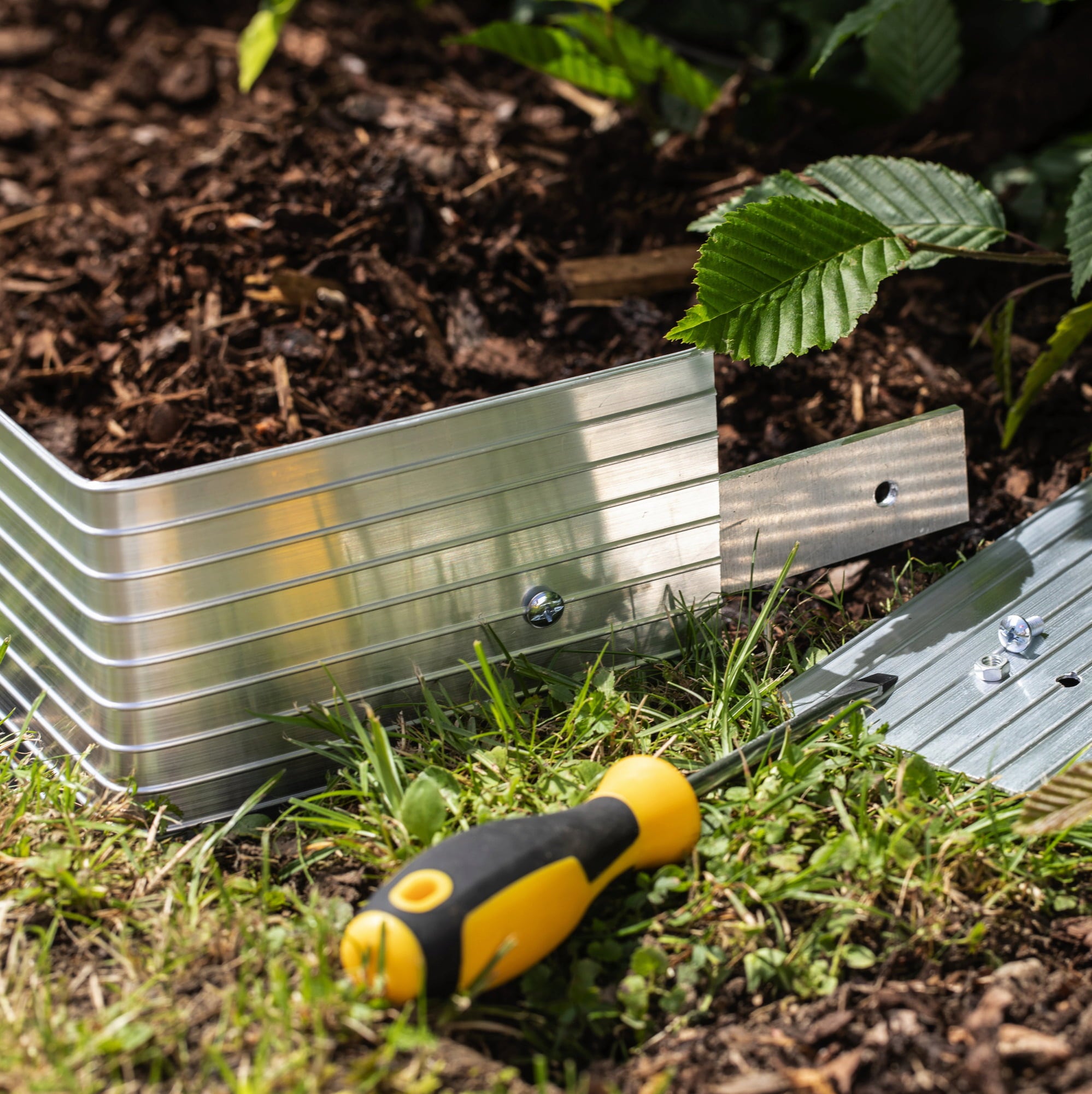 Förbered jorden med spade eller gräskantsjärn för enklare montering.