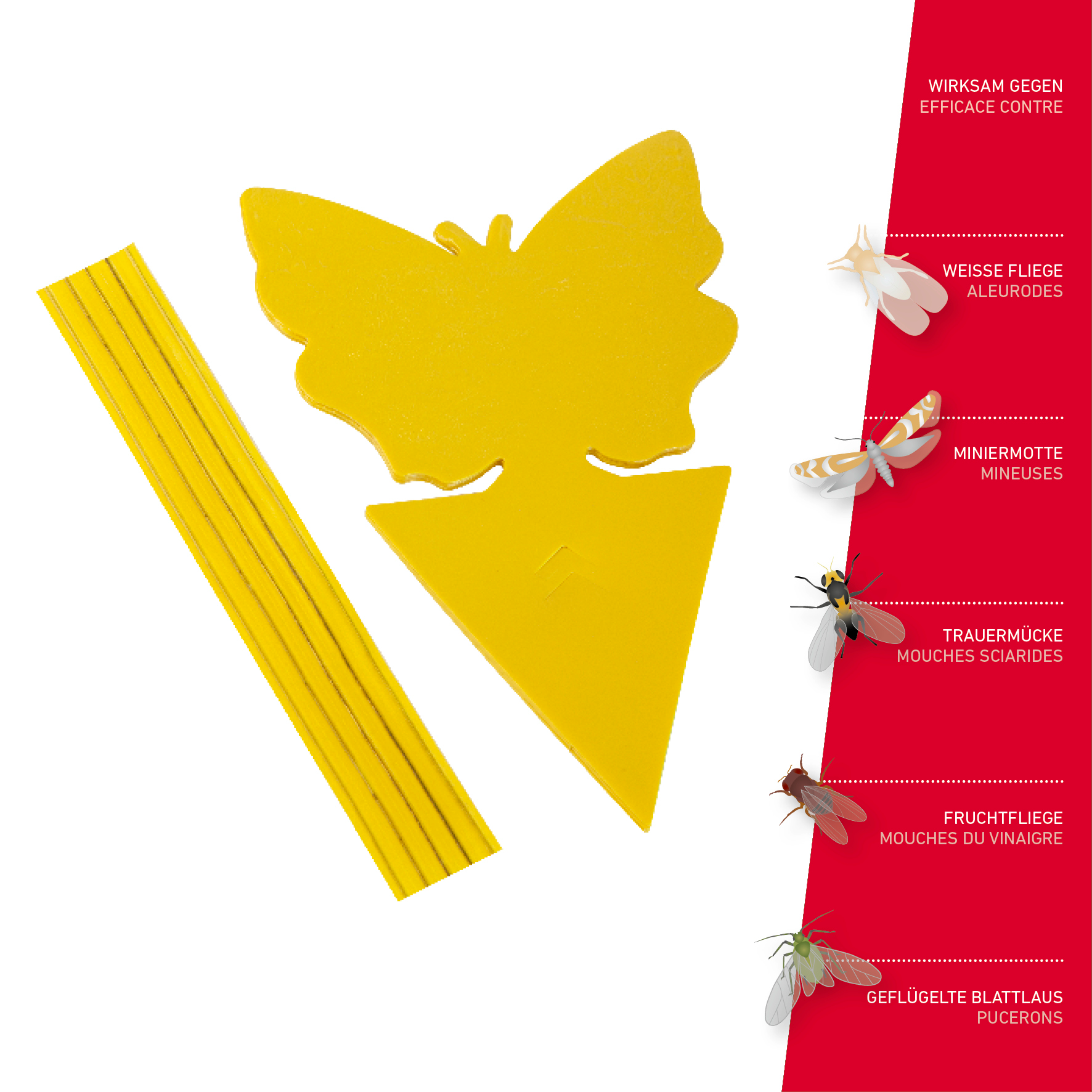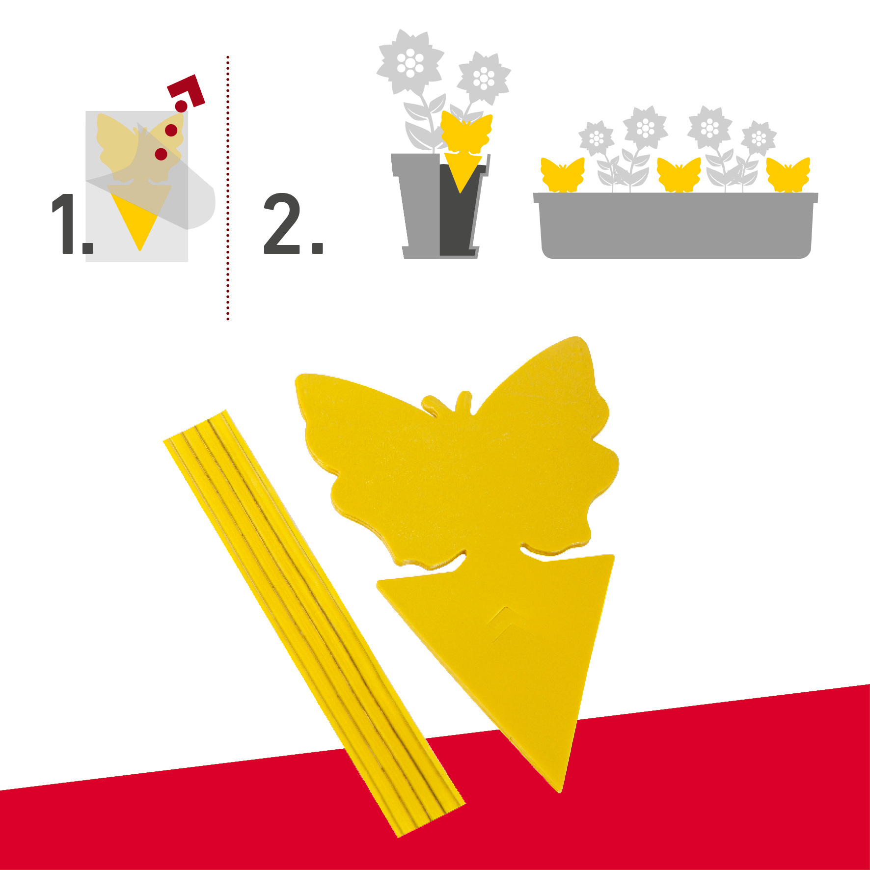 Användning: Stick ner 1 gul fälla per kruka eller med cirka 30 cm mellanrum direkt i jorden. Ta bort skyddsfilmen.