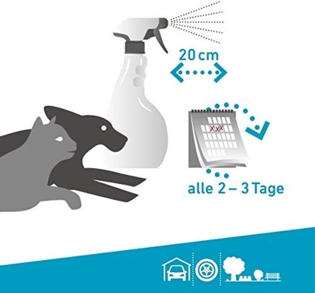 Med denna spray håller du hundar och katter effektivt borta från trädgården och huset. Innehållet består av naturliga oljor som är helt ofarliga för djuren. Tack vare sina känsliga nosar undviker de snabbt de behandlade områdena och kommer sällan tillbaka.