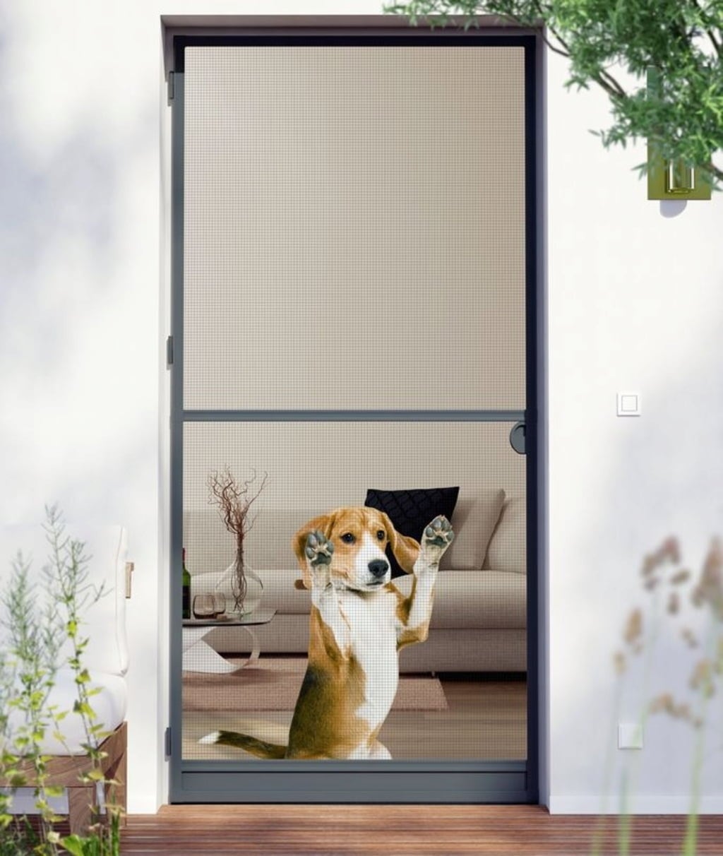 Praktiskt tillbehör för alla hundägare. Det formstabila specialnätet är extra belagt för att stå emot klösmärken – perfekt om du har husdjur. Flugnätet förblir helt och skyddar samtidigt mot insekter.