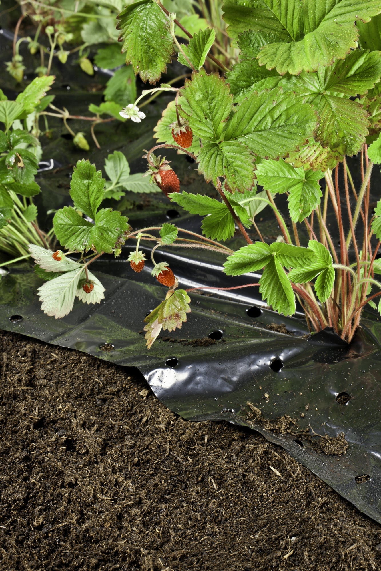 Denna svarta, UV-beständiga folie bekämpar ogräs på ett naturligt sätt och främjar samtidigt tillväxten av jordgubbar samt andra frukt- och grönsaksplantor. Perforeringen möjliggör ett effektivt värmeutbyte, vilket gör att du kan skörda tidigare på säsongen.