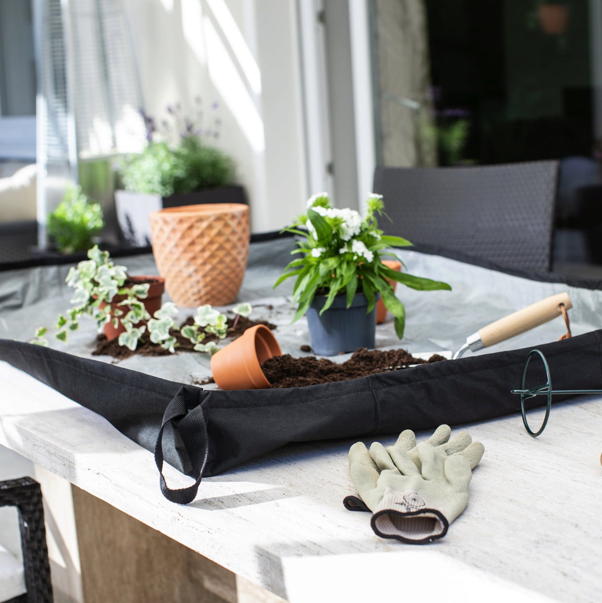 Mycket praktisk lösning för plantering och omplantering både inomhus och utomhus. Håller arbetsytan ren och skyddad.