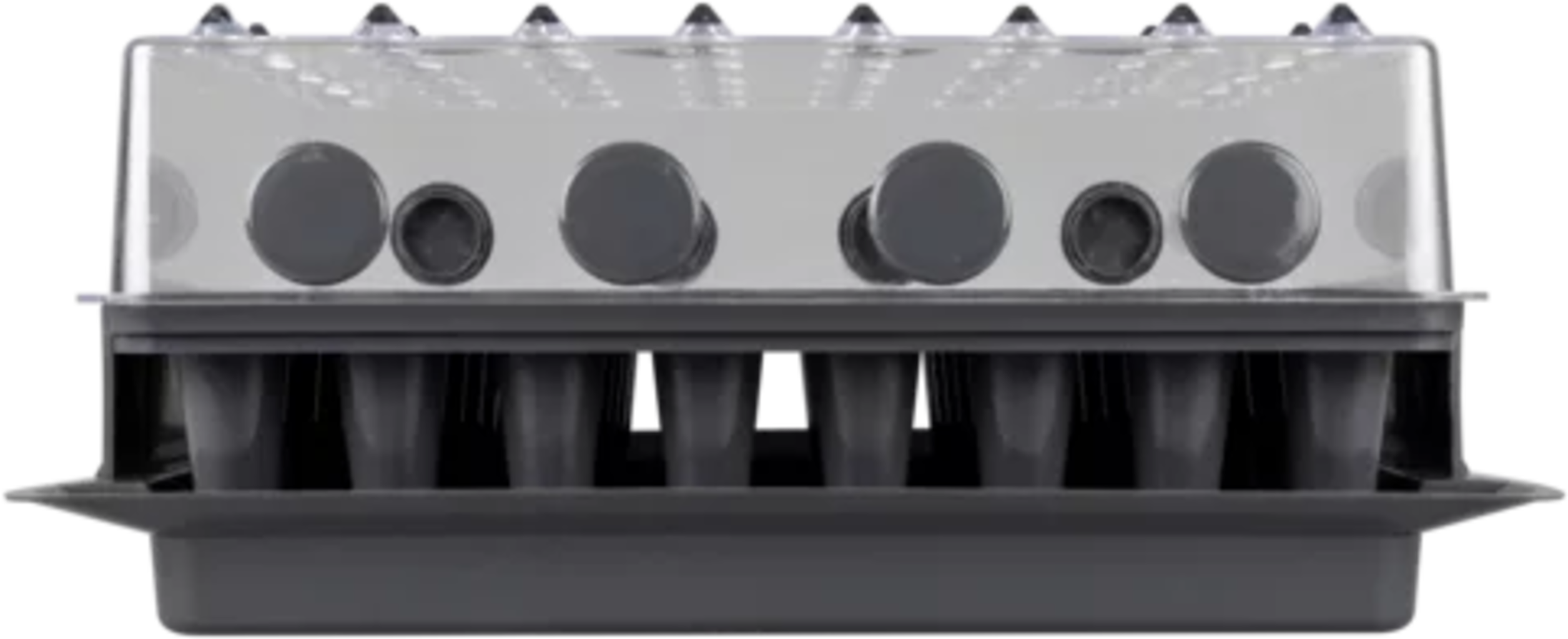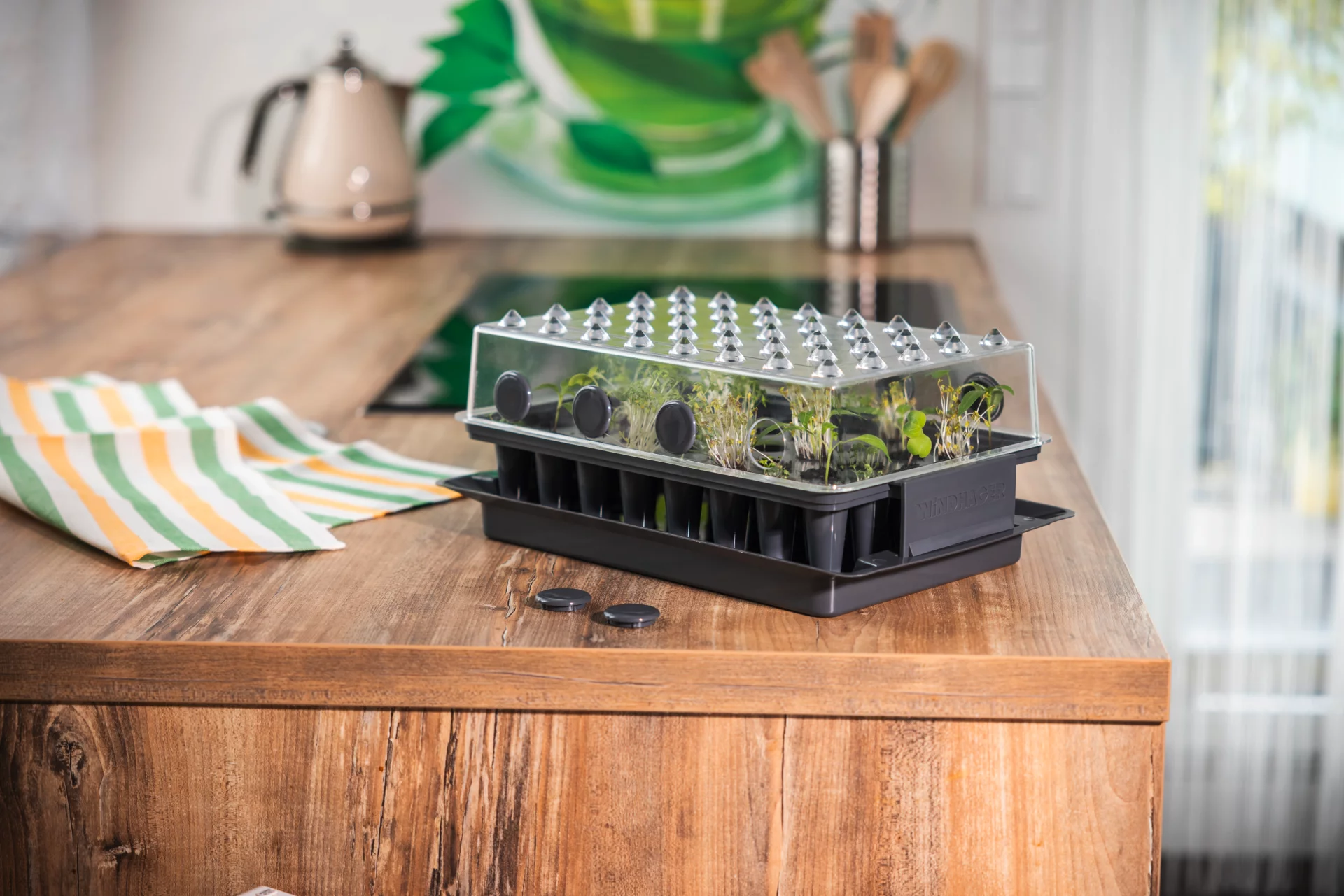 Med Root Xtender förrotsskola drar du enkelt upp egna plantor. De koniska cellerna främjar djup rotutveckling - en viktig förutsättning för snabb tillväxt efter omplantering. Det medföljande locket skapar ett optimalt mikroklimat, medan de upphöjda nopporna på ovansidan gör det enkelt att plantera om. Den undre vattenbrickan samlar upp överskottsvatten och fungerar som vattenreservoar för större plantor. Tack vare det praktiska pop-up-systemet kan du smidigt ta ur plantorna när det är dags att plantera om dem - med starka rötter och redo att växa vidare.