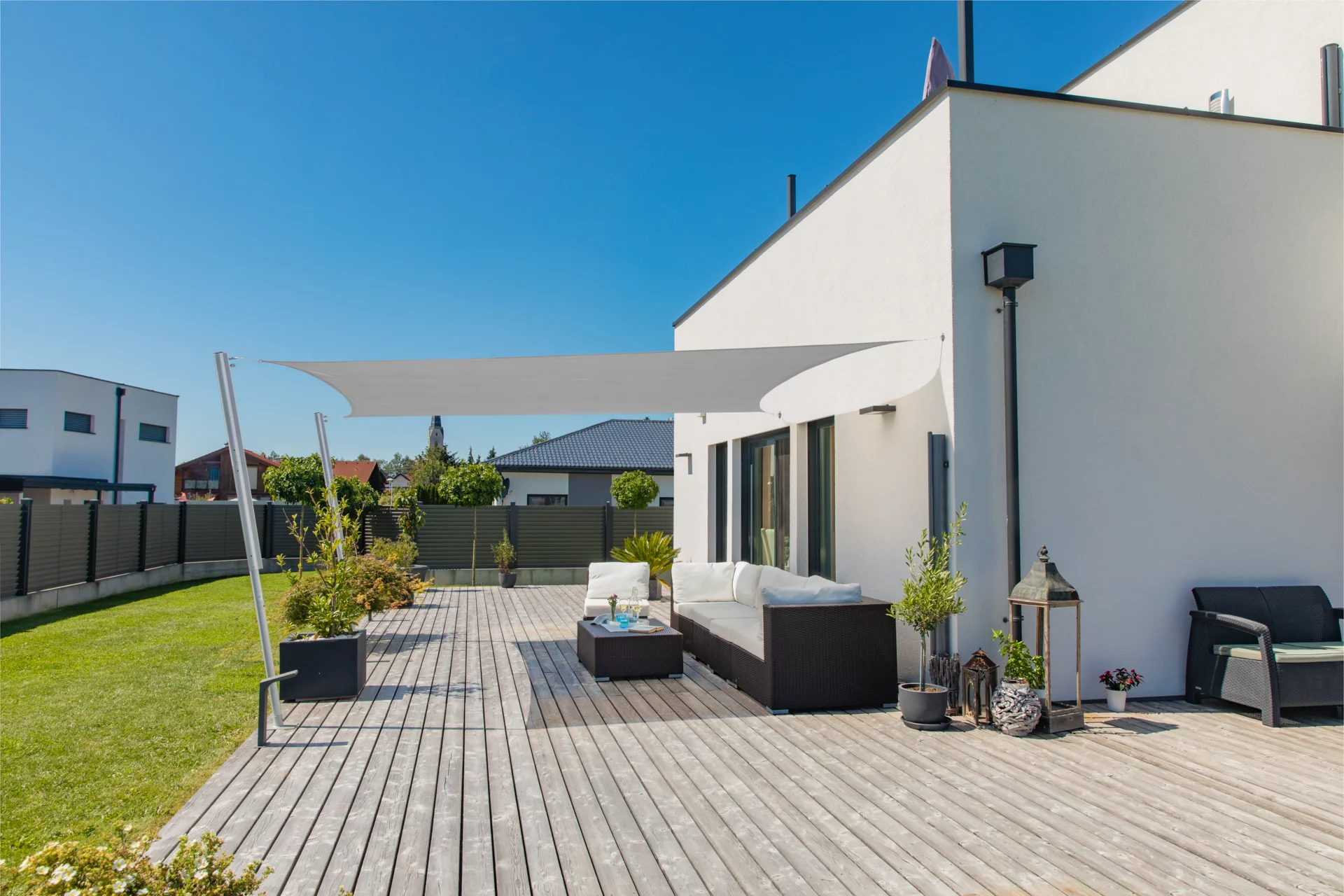 För att kunna njuta fullt ut av sommardagarna hemma är skugga ett måste. Med solseglet Capri skapar du en behaglig skuggplats - och till skillnad från ett parasoll går ingen värdefull yta förlorad som ställplats. Det är snabbt och enkelt att montera, och kan när som helst tas ned om du vill byta färg. Praktiskt, modernt och ett måste för din utemiljö!