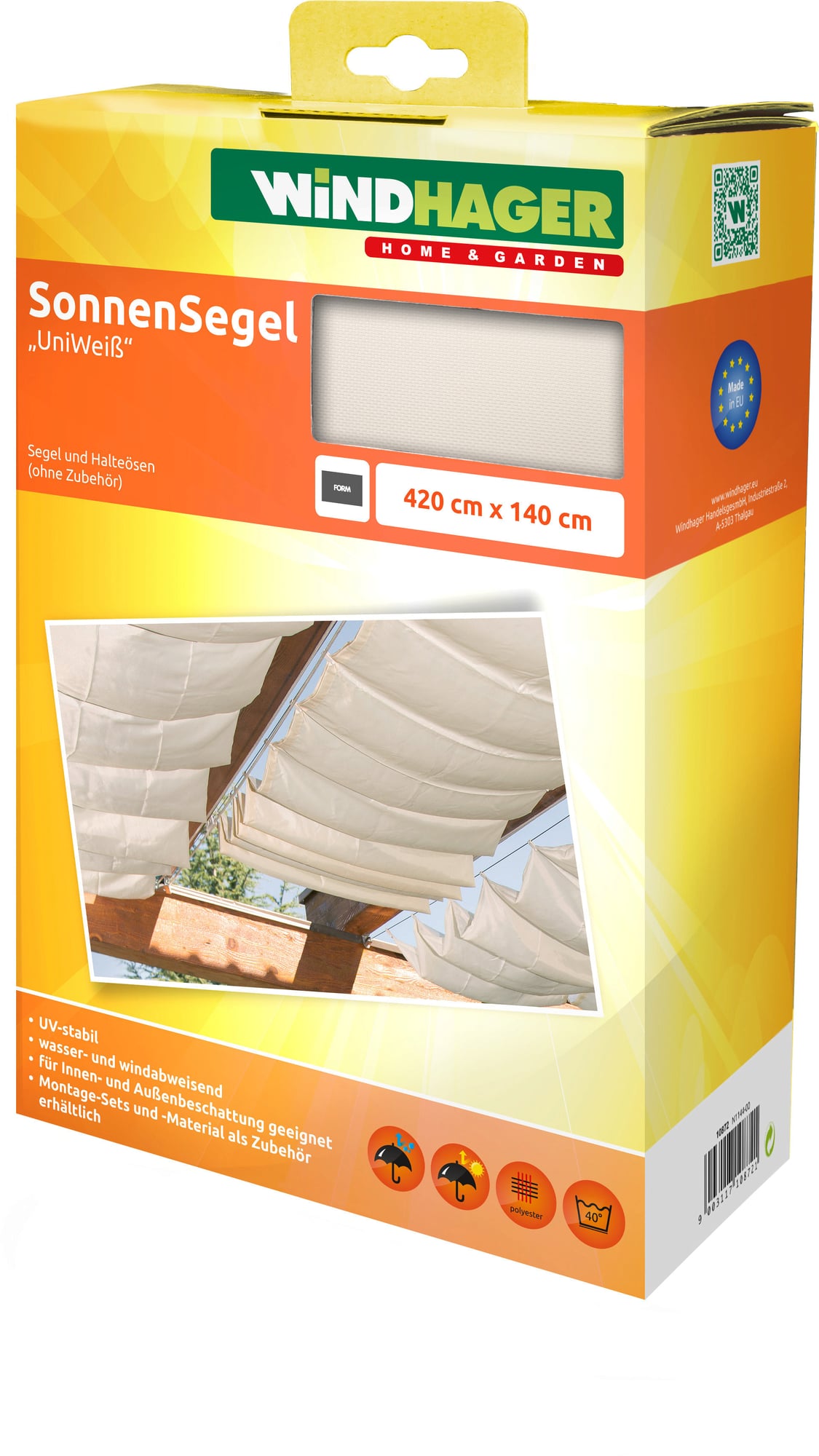 Windhager Solsegel med Rep-upphängning, 4,2 x 1,4 m, Vit