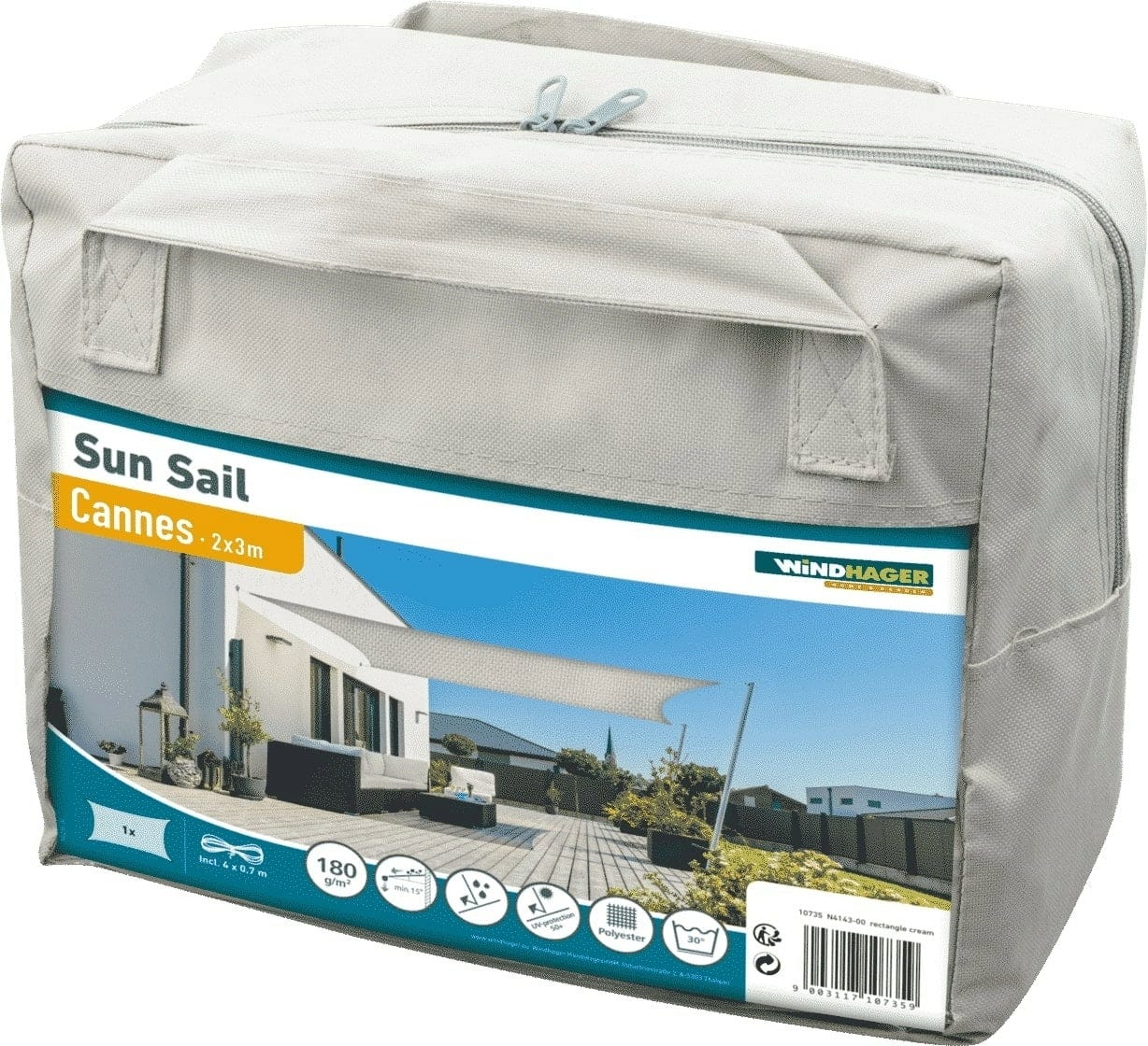 Windhager Solsegel SunSail CANNES Rektangel 2x3 m, creme-grå