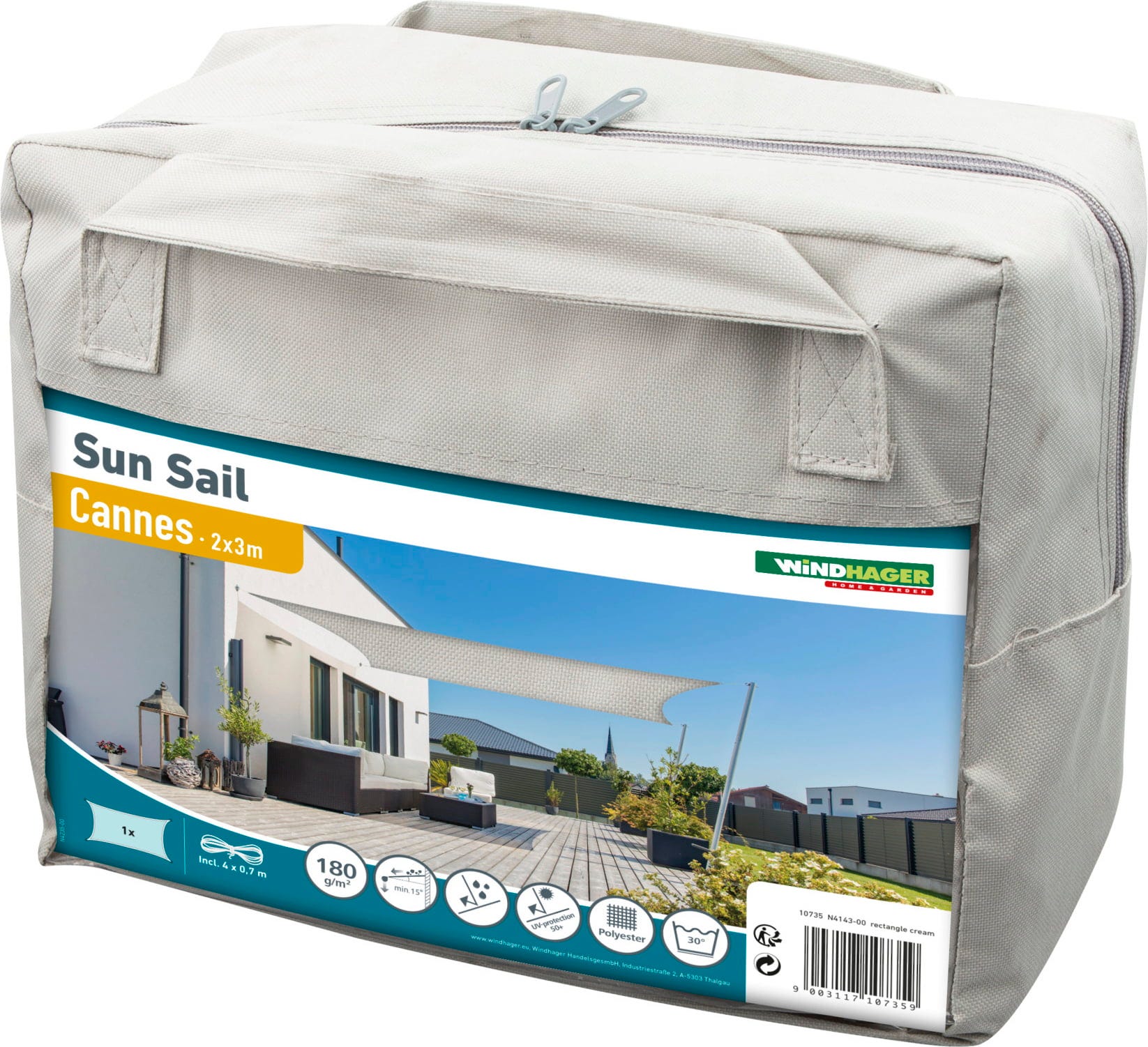 Windhager Solsegel SunSail CANNES Rektangel 2x3 m, vit