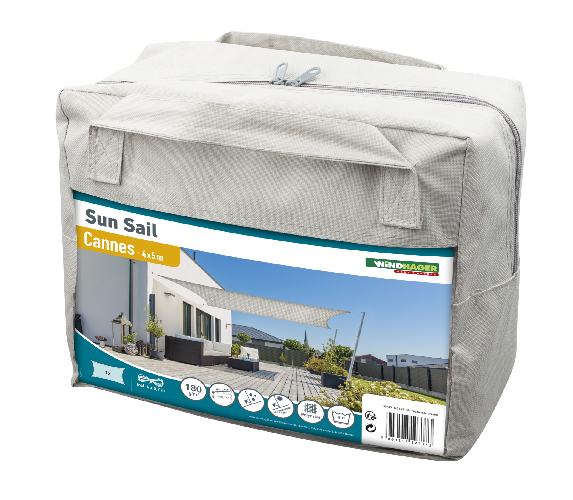 Windhager Solsegel SunSail CANNES Rektangel 4x5 m, creme-grå