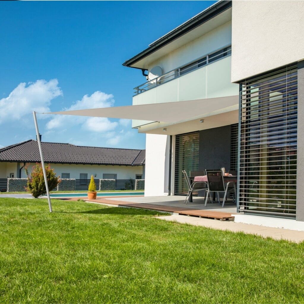 Det triangelformade solseglet SunSail CANNES är snabbt och enkelt att sätta upp, och kan enkelt tas ned om du vill byta färg eller förvara det under vintern.