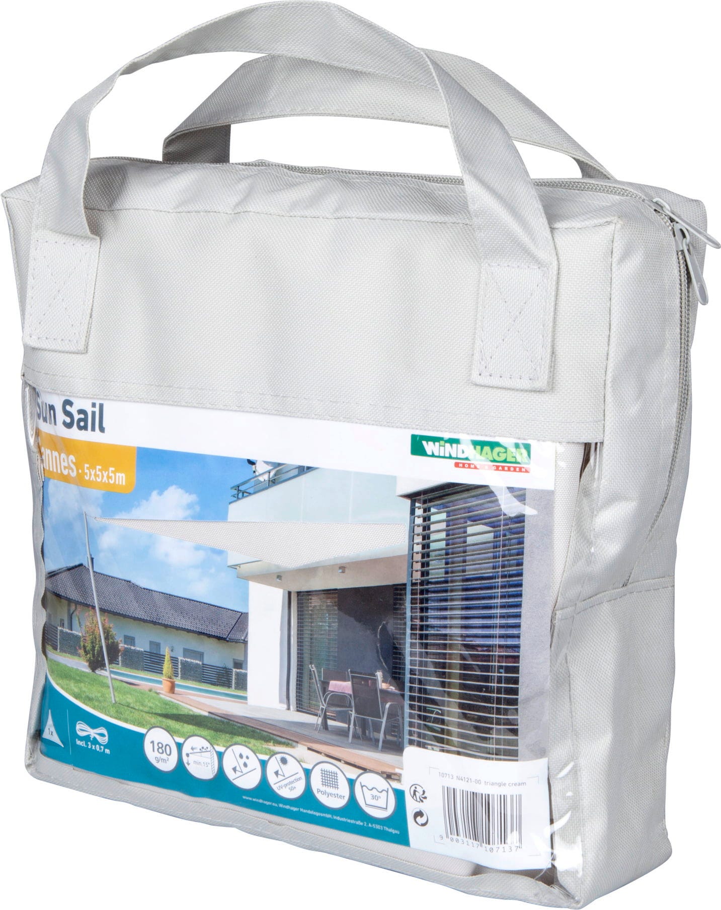 Windhager Solsegel SunSail CANNES Triangel 4x4x4 m, vit