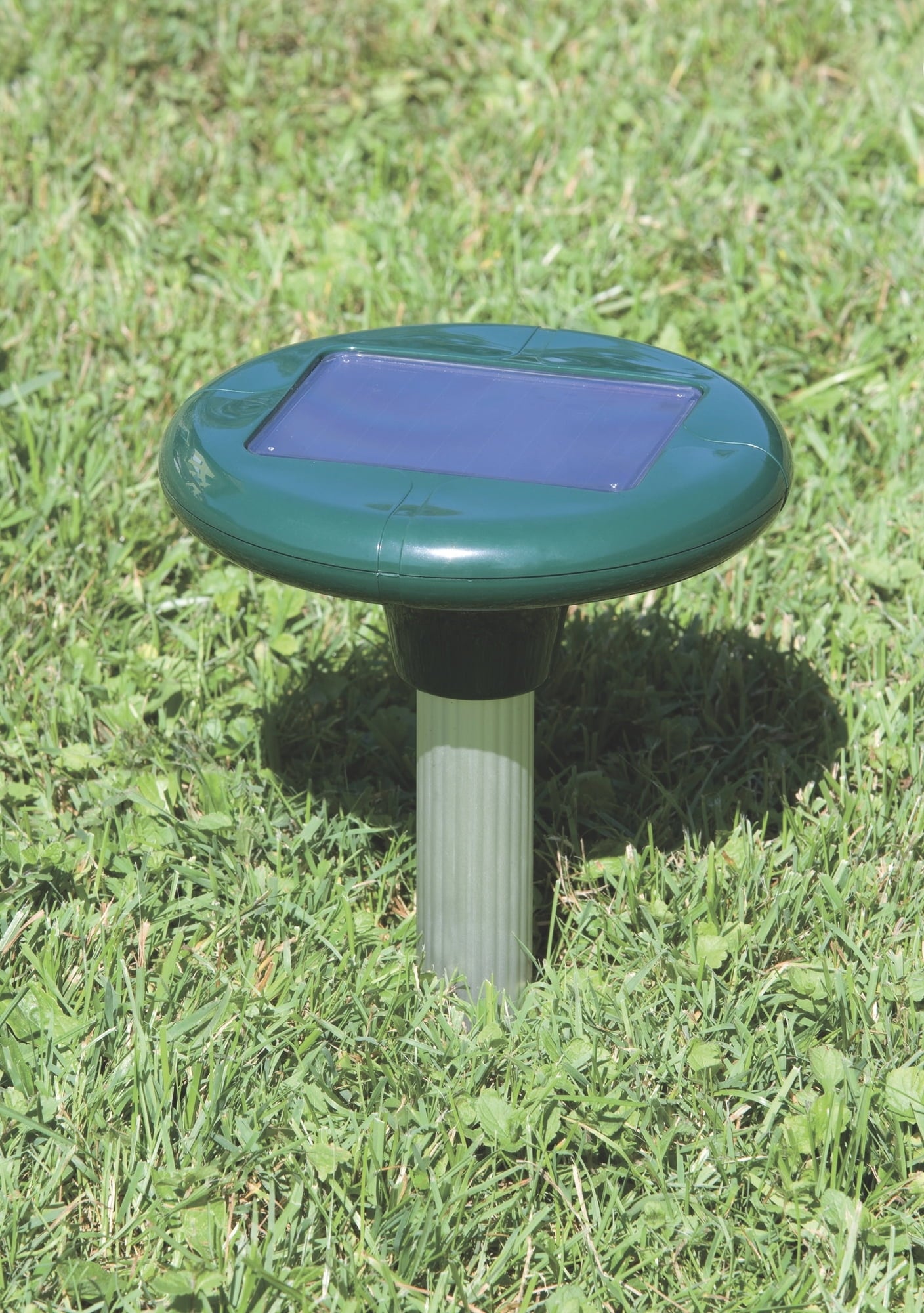 Denna sork- och mullvadsskrämma sänder ut lågfrekventa ljudvågor i ett cirkelformat mönster, nästan ohörbara för människor men desto mer irriterande för oönskade gäster i trädgården. Ett effektivt och miljövänligt skydd för din gräsmatta och dina odlingar.