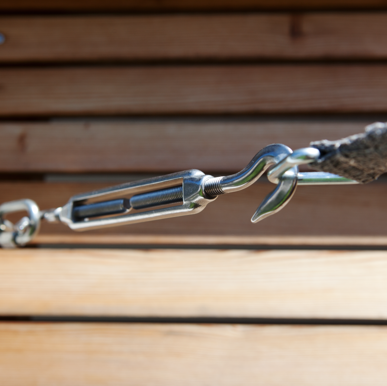 Ett praktiskt tillbehör för att spänna upp solseglet. Med den här spännankaren blir monteringen både enkel och snabb.