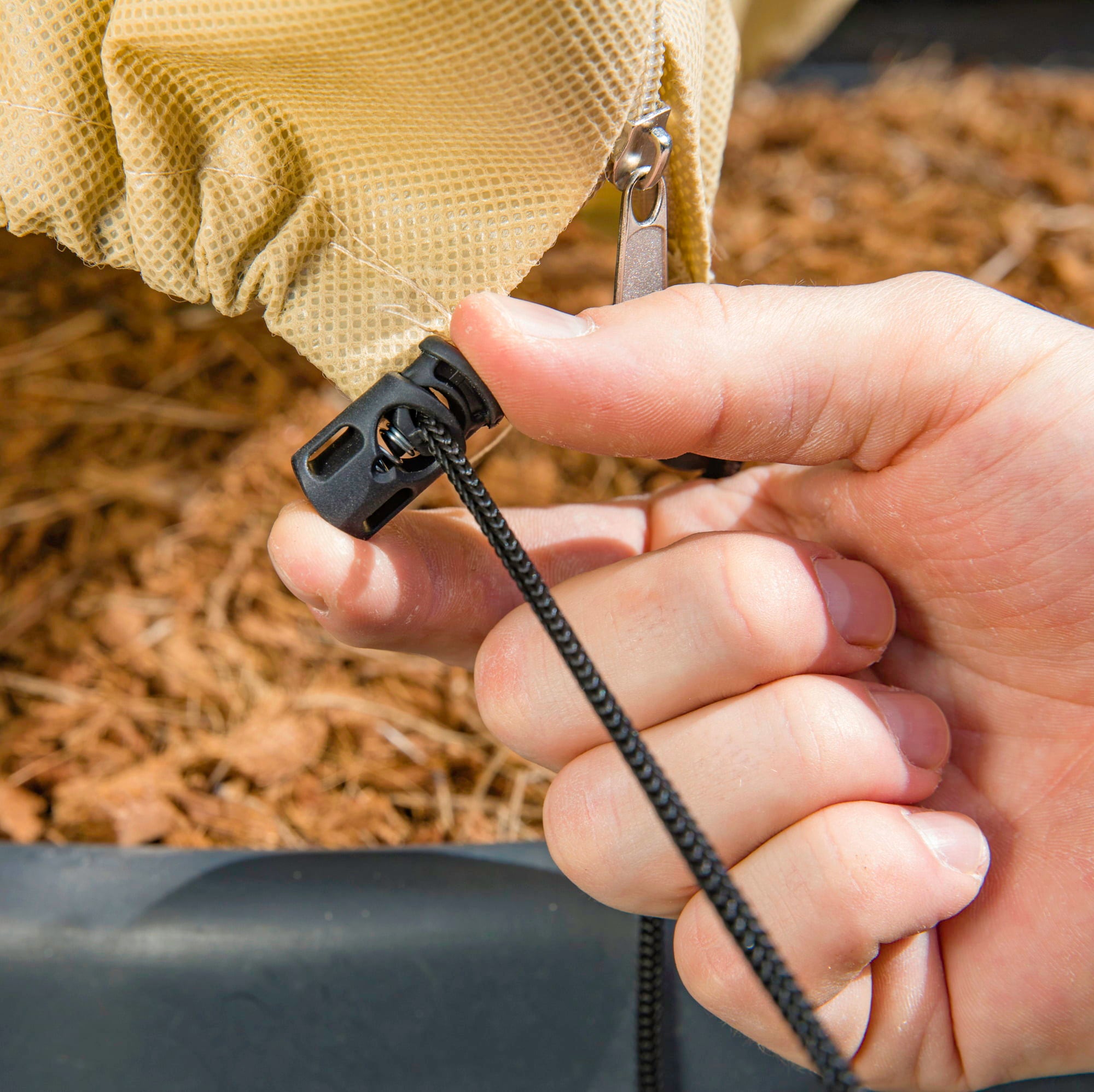 Denna XXL-vinterhuva i fiberduk är perfekt för att skydda större växter med breda eller buskiga kronor mot minusgrader. Monteringen är mycket enkel: dra huvan över växten, stäng dragkedjan nedifrån och upp och justera snörningen upptill och nedtill vid behov. Så skyddas dina växter under vintern och kan blomstra igen till våren.