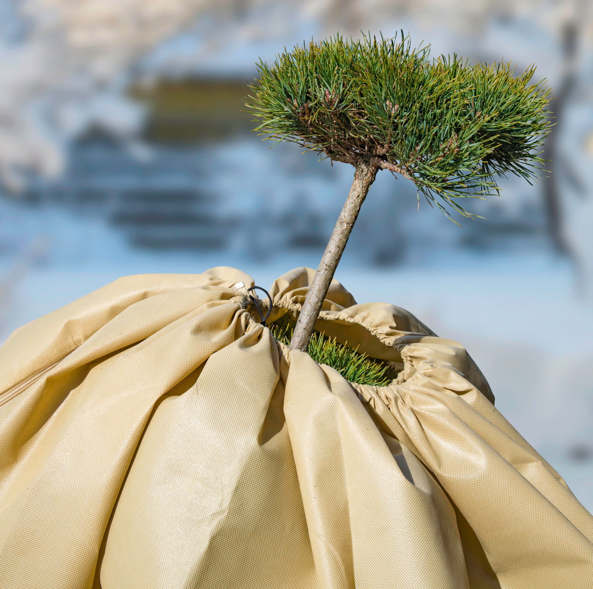 Denna XXL-vintermantel i fiberduk skyddar större växter med känsliga eller skrymmande kronor effektivt mot frost. Den är lätt att sätta på: svep manteln runt växten, dra upp dragkedjan och fäst snörning både upptill och nedtill om så önskas. Ett enkelt sätt att ge växterna bästa skydd under vintern, så att de kan komma tillbaka i full prakt till våren.